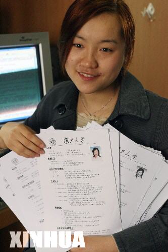 資料圖片:一名大學畢業生在展示自己尚未投遞的求職簡歷。