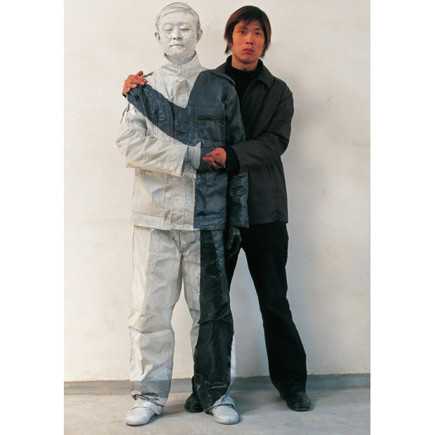 劉勃麟今年36歲,籍貫中國山東,將自己的身體當做繪畫材料,將涂料涂邊全身以融進他身后的背景中。