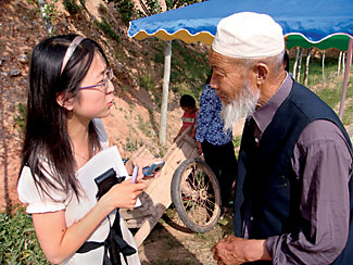 孫麗元:這位清華大三的學生正和樂都縣一位回族農民交談。要去邊遠地區教英語,她曾忐忑不安,現在她說自己很有熱情。