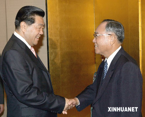 9月14日,全國政協(xié)主席賈慶林在東京出席日本經(jīng)濟團體聯(lián)合會舉辦的歡迎招待會。這是賈慶林與日本經(jīng)團聯(lián)會長御手洗富士夫握手。 新華社記者姚大偉攝
