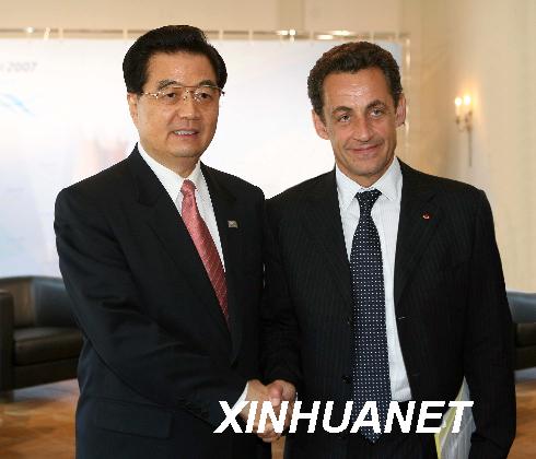 2007年6月8日,國家主席胡錦濤在德國海利根達姆會見法國總統薩科齊。新華社記者劉建生攝