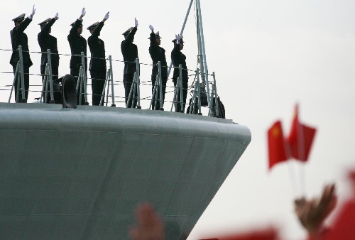 中國駐日大使崔天凱、中國駐日使館國防武官徐京明少將、日本海上自衛隊橫須賀地方隊總監半田謙次郎中將、第一護衛艦群司令河村正雄少將等中日兩國有關部門官員,以及日中友好團體、在日華僑華人、山手中華學校小學生、留學生,中資機構代表等到碼頭為“深圳”號導彈驅逐艦送行。