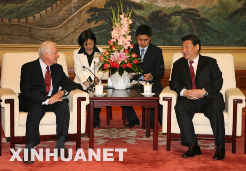 12月5日,中共中央政治局常委、書記處書記習(xí)近平在北京人民大會(huì)堂會(huì)見來訪的美國(guó)前總統(tǒng)卡特。新華社記者 馬占成 攝
