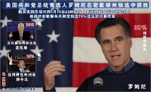 圖表:美國共和黨總統(tǒng)競選人羅姆尼在密歇根州預(yù)選中獲勝 新華社發(fā)