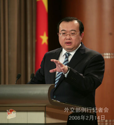 2008年2月14日下午,外交部發言人劉建超主持例行記者會,就北京奧運會、達爾富爾、緬甸、日本餃子事件等問題回答記者提問。
