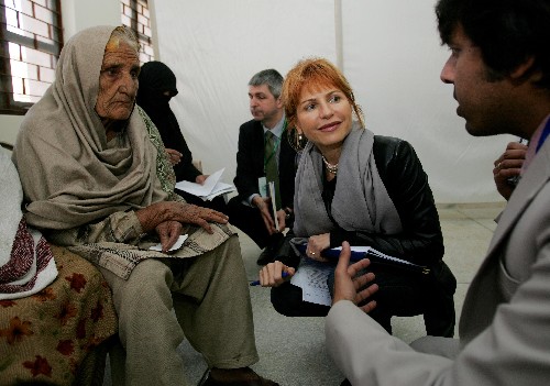 2月18日,在巴基斯坦首都伊斯蘭堡郊區,來自歐盟的觀察員格魯勃爾(右二)在投票站了解投票情況。巴基斯坦議會選舉于當地時間2月18日8時開始,將選舉產生新一屆巴國民議會和4個省級議會。國際觀察員走訪投票站,對選舉進行監督。 新華社記者周磊攝