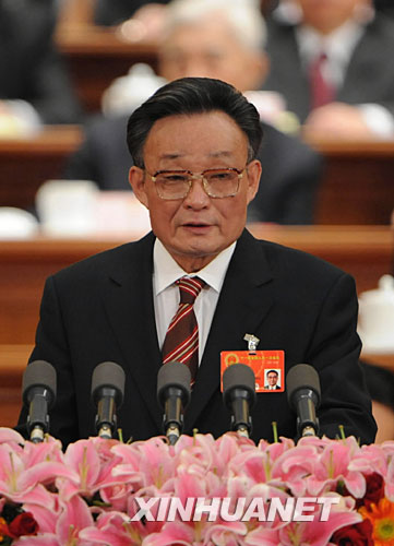3月8日,十一屆全國人大一次會議第二次全體會議在北京人民大會堂舉行。受十屆全國人大常委會委托,吳邦國委員長向大會作工作報告。 新華社記者高潔攝