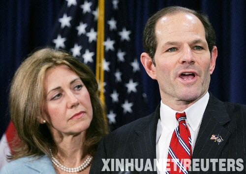 3月10日,美國紐約州州長、民主黨人艾略特·斯皮策(右)和夫人在紐約出席新聞發布會。當日,斯皮策舉行緊急新聞發布會,就他卷入一起性交易案向家人和公眾表示道歉。斯皮策隨即面臨辭職壓力。 新華社/路透