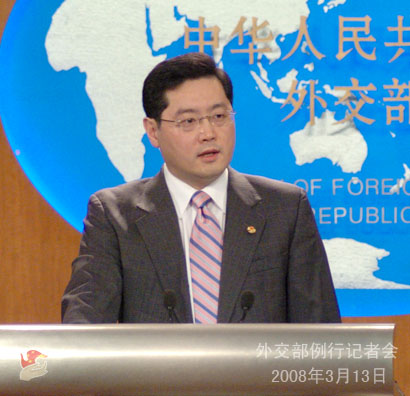 2008年3月13日下午,外交部發(fā)言人秦剛舉行例行記者會,就東海問題、中國警方赴日調(diào)查餃子事件、外國記者在華采訪、秘魯總統(tǒng)和韓國外長訪華等答記者問。
