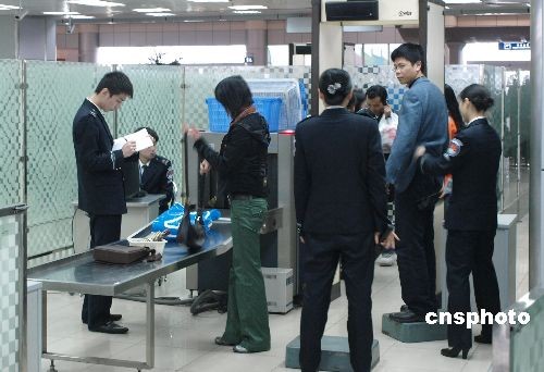 2008年3月13日,南昌昌北機場。據悉民航總局為保障航空安全,規定從3月11日起,所有液態物品均不得隨身攜帶上飛機。 中新社發 李國 攝