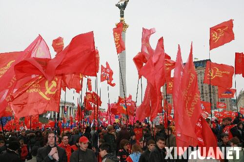 3月31日,在美國總統(tǒng)布什到訪前,烏克蘭左翼黨派在首都基輔市中心舉行大規(guī)模群眾集會(huì),反對(duì)烏克蘭加入北約。 新華社記者宋宗利攝