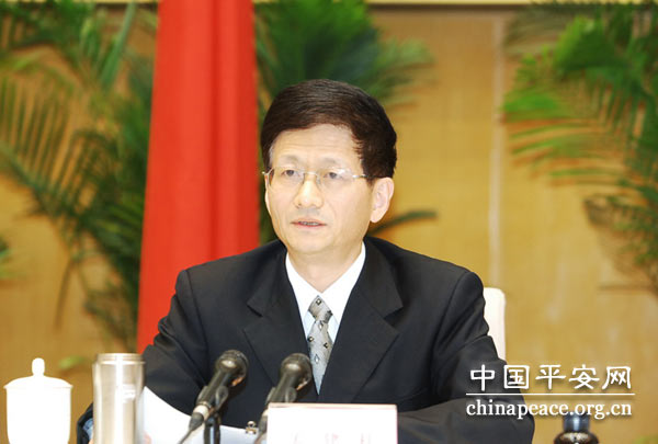 5月5日,中央政法委在京召開全國繼續(xù)深化打黑除惡專項斗爭電視電話會議。國務委員、中央政法委副書記、中央綜治委副主任孟建柱出席會議并講話。 中國平安網(wǎng) 劉軍納攝