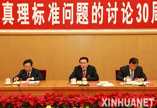 李長春指出,30年前,關于實踐是檢驗真理的唯一標準的討論,是在鄧小平同志等老一輩無產階級革命家的領導和支持下開展起來的。這場討論,為我們黨沖破“兩個凡是”的嚴重束縛、重新確立馬克思主義的思想路線奠定了理論基礎,為黨的十一屆三中全會實現歷史轉折、我國邁向改革開放新時期作了思想準備,為我們黨在改革開放30年中堅持和發展中國特色社會主義道路、形成中國特色社會主義理論體系提供了強大精神動力。