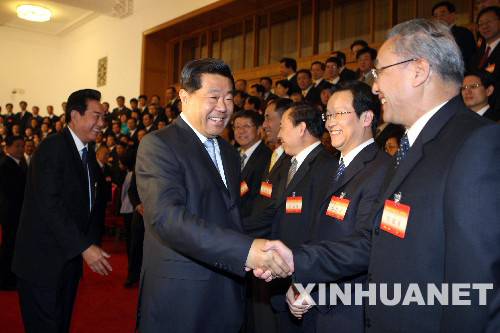 6月3日,海峽兩岸關(guān)系協(xié)會第二屆理事會第一次會議在北京人民大會堂召開。會議開始前,中共中央政治局常委、全國政協(xié)主席賈慶林親切會見全體代表。 新華社記者 劉衛(wèi)兵 攝