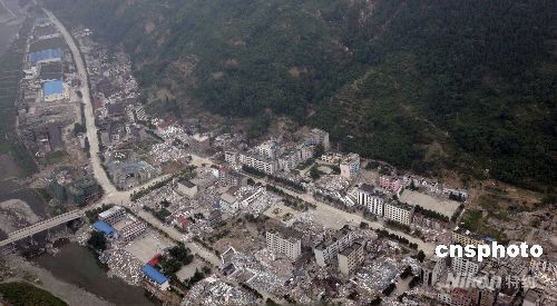 5月31日,在空中鳥瞰已成“死城”的北川縣城。 中新社發(fā) 杜洋 攝