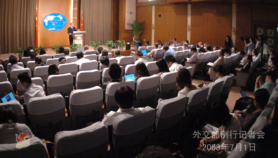 2008年7月1日下午,外交部發言人劉建超舉行例行記者會,就胡錦濤主席將出席八國集團同有關國家領導人對話會議、六方會談、津巴布韋局勢、中央有關部門與達賴私人代表接觸等答問。