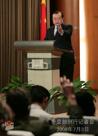 2008年7月3日下午,外交部發言人劉建超舉行例行記者會,就墨西哥總統訪華、蒙古局勢、六方會談、外國領導人出席北京奧運會等答問。