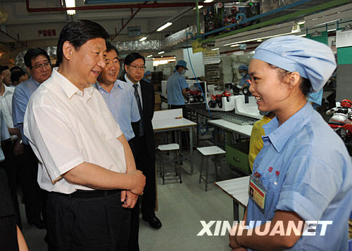 7月4日至5日,中共中央政治局常委、中央書記處書記、國家副主席習近平在廣東考察工作。這是7月5日,習近平在威明實業有限公司考察。 新華社記者 黃敬文 攝