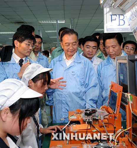 7月4日至6日,中共中央政治局常委、國務院總理溫家寶在江蘇、上海就經濟運行情況進行調查研究。這是7月5日,溫家寶在江蘇微盟電子考察。新華社記者 饒愛民 攝