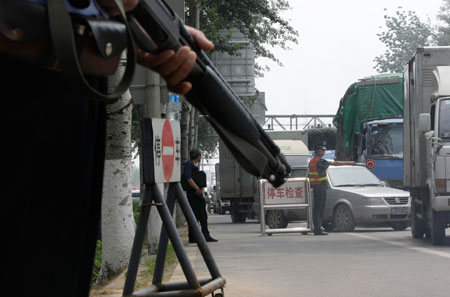 7月10日,北京警方荷槍實彈把守主要進京通道。