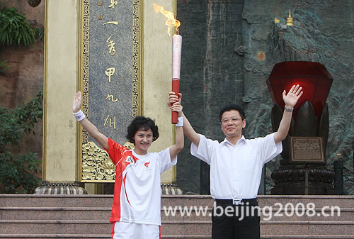 8月4日早上7點38分,北京奧運會圣火開始了在四川樂山市的傳遞,這是四川省境內傳遞的第二站。首棒火炬手是兩度獲得奧運會冠軍、開創跳水界“高敏時代”的“跳水皇后”高敏。