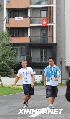 8月30日,運(yùn)動(dòng)員(左)在殘奧村內(nèi)散步。當(dāng)日,北京殘奧村正式開(kāi)村。 新華社記者李文攝