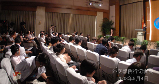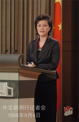 2008年9月4日,外交部發言人姜瑜舉行例行記者會,主要就中國政府向聯合國提交2007年度軍事開支報告、南奧塞梯問題、朝鮮半島核問題等答記者問。