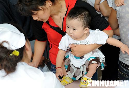 資料圖片:9月19日,家長(zhǎng)帶著孩子在南京市兒童醫(yī)院用會(huì)議廳改成的專病門診區(qū)登記,準(zhǔn)備接受檢查。連日來(lái),全國(guó)各有關(guān)地方認(rèn)真貫徹黨中央、國(guó)務(wù)院關(guān)于對(duì)三鹿嬰幼兒奶粉受三聚氰胺污染重大安全事故作出的重要指示精神,積極采取各種有效措施,全力救治和篩查泌尿系統(tǒng)結(jié)石患兒。新華社記者 孫參 攝