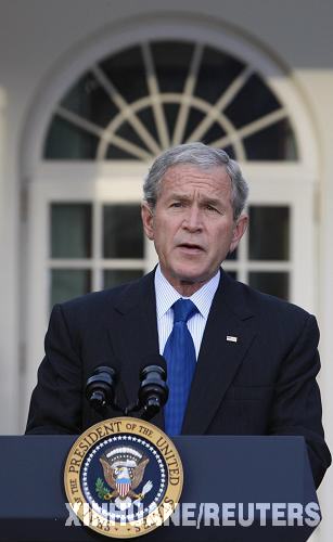 10月14日,美國總統(tǒng)布什在華盛頓白宮發(fā)表講話。布什當天表示將推出具體的救市措施,其中包括動用救援資金購買銀行股份。 新華社/路透
