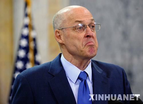 10月14日,美國財長保爾森在華盛頓舉行的聲明會上發(fā)言。當日,保爾森和美聯(lián)儲主席伯南克及總統(tǒng)金融工作市場小組的成員在位于華盛頓的美國財政部發(fā)表聲明,公布新救市方案的詳情。新華社記者張巖攝