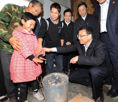 李克強臨時停車走進漩口鎮油輾村村民汪娟住的過渡性房,察看屋頂有無漏縫、房子是否漏風,俯身詢問一日三餐吃得如何、御寒棉衣被是否夠用。在漁子溪村,李克強逐戶走進羌族群眾家中,拉家常,問冷暖。在居住活動板房的李玉明、馬學清家,李克強仔細了解板房保溫性能和過冬物品情況。看到當地政府給每家分發的藏式取暖爐,他蹲下身子,用手感受爐子暖不暖和,并叮囑村民要特別注意通風和防火。李克強關切地說,重災區山高坡陡、冬天陰冷潮濕,對需在過渡房越冬的村民,當務之急是抓緊做好臨時住所的保暖處理,做好口糧、衣被、燃料等物資籌集供應。他要求當地政府把工作做深、做細、做實,確保受災群眾吃得飽,穿得暖,安全度過冬天。