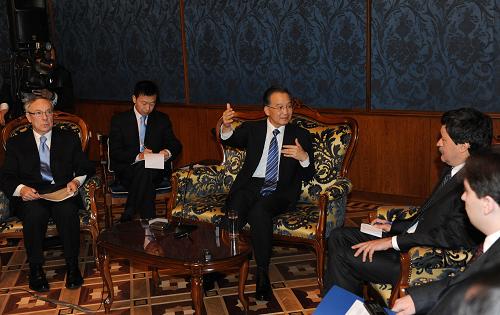 10月29日,溫家寶總理在莫斯科接受俄羅斯俄通社-塔斯社副社長庫奇科和國際文傳電訊社第一副社長阿卜杜林的聯合采訪,就發展中俄戰略協作伙伴關系、深化兩國務實合作、中國的經濟發展狀況和發展戰略,以及國際金融危機問題回答了提問。新華社記者 黃敬文 攝
