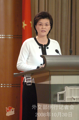 2008年10月30日,外交部發(fā)言人姜瑜舉行例行記者會(huì),就我在蘇丹被綁架人員事件最新進(jìn)展、六方會(huì)談、國際金融峰會(huì)等答問。