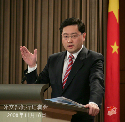 2008年11月18日,外交部發(fā)言人秦剛舉行例行記者會,就胡錦濤主席出席亞太經(jīng)合組織第十六次領(lǐng)導(dǎo)人非正式會議、中美戰(zhàn)略經(jīng)濟對話等答問。