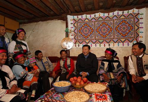 習(xí)近平深入城鄉(xiāng)居民家中了解群眾生產(chǎn)生活情況。在去年6月3日寧洱地震災(zāi)區(qū)的同心鄉(xiāng)那柯里村,習(xí)近平仔細(xì)了解受災(zāi)群眾住房重建、小孩上學(xué)等情況。這個(gè)村在災(zāi)后不等不靠,充分發(fā)揮廣大黨員的先鋒模范作用,堅(jiān)持自力更生、艱苦奮斗,把災(zāi)后恢復(fù)重建與新農(nóng)村建設(shè)相結(jié)合、與發(fā)展旅游文化產(chǎn)業(yè)相結(jié)合,村民生產(chǎn)生活基本恢復(fù)正常。他了解到這些情況后十分高興,強(qiáng)調(diào)要高度重視災(zāi)區(qū)群眾安全過(guò)冬問(wèn)題,進(jìn)一步采取有力措施確保災(zāi)區(qū)群眾有口糧吃、有衣服穿、有棉被蓋。在昆明市桃源社區(qū)低收入困難群眾家里,他詳細(xì)詢(xún)問(wèn)生活情況,叮囑當(dāng)?shù)馗刹恳M(jìn)一步落實(shí)好低保等政策,幫助困難群眾解決生產(chǎn)生活中的實(shí)際問(wèn)題。