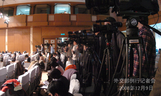 2008年12月9日,外交部發(fā)言人劉建超舉行例行記者會(huì),主要就中法關(guān)系、六方會(huì)談、津巴布韋局勢(shì)等答記者問(wèn)。