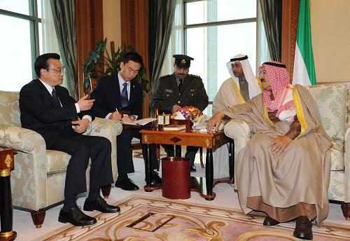 12月28日,科威特埃米爾(國家元首)艾哈邁德·薩巴赫在首都科威特城會見中國國務(wù)院副總理李克強。新華社記者 饒愛民 攝
