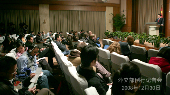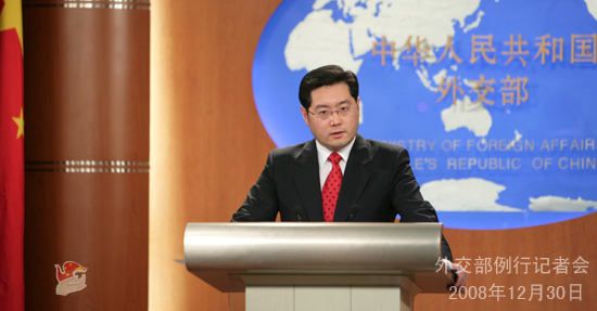 2008年12月30日,外交部發言人秦剛舉行例行記者會,主要就巴以沖突、印巴局勢等答記者問。