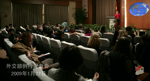 2009年1月22日,外交部發(fā)言人姜瑜舉行例行記者會(huì),主要就中美、中法關(guān)系,中東局勢等答記者問。