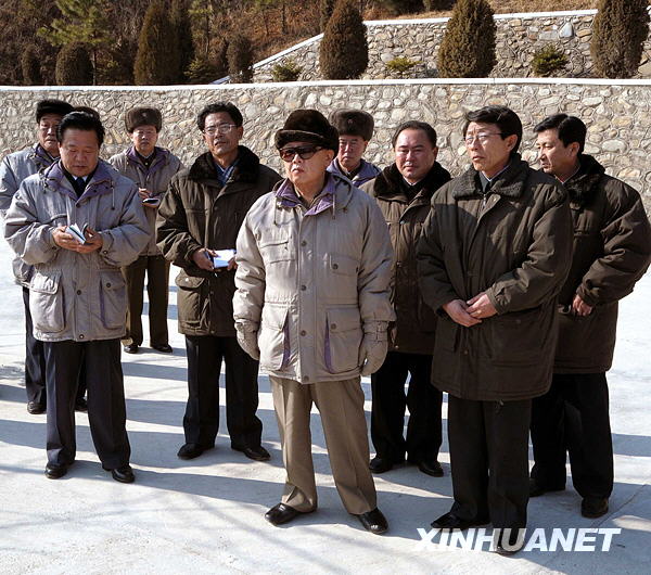 這張朝鮮中央通訊社2月1日提供的照片顯示朝鮮最高領導人金正日(中)視察位于黃海北道的禮成江1號青年電站。朝鮮《勞動新聞》1日報道,金正日于近日視察了禮成江1號青年電站。新華社/朝中社