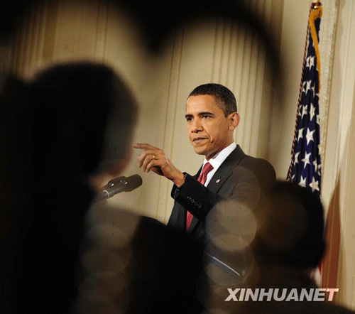 2月9日,美國(guó)總統(tǒng)奧巴馬在白宮舉行就職以來(lái)的首場(chǎng)新聞發(fā)布會(huì)。新華社記者張巖攝