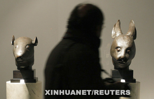 這是2月21日拍攝的在巴黎大皇宮預展中的鼠首和兔首銅像。新華社/路透