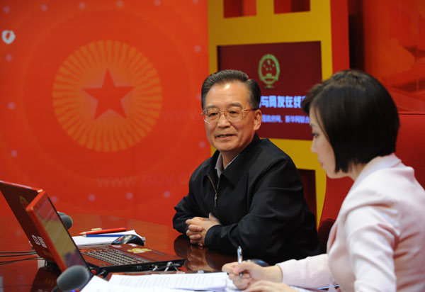 2月28日15時,中共中央政治局常委、國務院總理溫家寶與網友在線交流并接受中國政府網、新華網聯合專訪。中國政府網和新華網將全程進行文字和視頻直播。圖為溫家寶回答網友問題。新華社記者 李學仁 攝