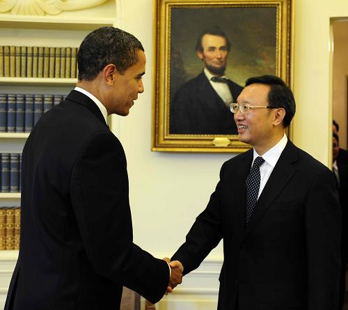 新華社華盛頓3月12日電(記者嚴峰 楊晴川)美國總統奧巴馬當地時間12日下午在白宮會見了中國外交部長楊潔篪。美國副總統拜登、國務卿希拉里·克林頓、總統國家安全事務助理瓊斯會見時在座。