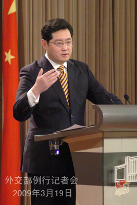 2009年3月19日下午,外交部發(fā)言人秦剛主持例行記者會,就朝鮮總理訪華、吳思科大使接任中國中東問題特使、可口可樂公司收購匯源案等回答記者提問。