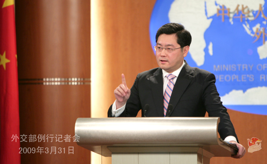2009年3月31日下午,外交部發(fā)言人秦剛舉行例行記者會,就朝鮮半島局勢、中法關(guān)系、中印關(guān)系、阿富汗問題等答問。