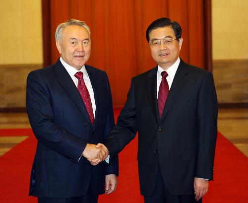 會談前,胡錦濤主席在人民大會堂北大廳為納扎爾巴耶夫總統訪華舉行歡迎儀式,全國人大常委會副委員長陳昌智、國務委員戴秉國、全國政協副主席白立忱、農工黨中央副主席汪紀戎、外交部部長楊潔篪、國家發展改革委主任張平、鐵道部部長劉志軍、國家能源局局長張國寶和中國駐哈薩克斯坦大使程國平等出席。