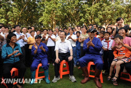 “大家好!”走進向陽隊的場院,溫家寶握著職工們的手關切地說:“海南農墾體制改革后,職工們的生活狀況如何?我一直放心不下,今天特意來看看大家。”