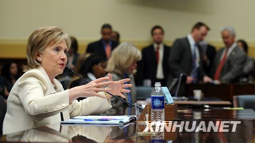 4月22日,美國國務卿希拉里·克林頓在華盛頓出席國會眾議院外交關系委員會舉行的聽證會。希拉里在聽證會上說,美方呼吁巴基斯坦政府采取有效措施,阻止塔利班武裝人員和極端分子勢力在巴基斯坦國內滲透。新華社/法新