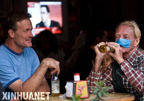 4月25日,在墨西哥首都墨西哥城的繁華地區,游客帶著口罩用餐、飲酒。當日,墨西哥政府派遣警力和士兵為墨西哥城市民免費分發600萬只口罩。據報道,截至目前,墨西哥已發現80多人死于流感,其中至少20人確診感染了A/H1N1型豬流感病毒。新華社發(戴維攝)